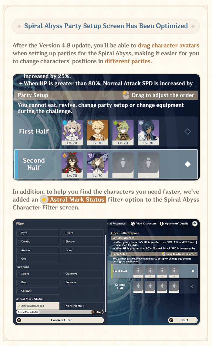 Optimizations for "Imaginarium Theater" are currently under development and will continue to be implemented in subsequent updates. We hope that these changes will provide Travelers with a better gameplay experience. We sincerely appreciate everyone's constructive feedback.