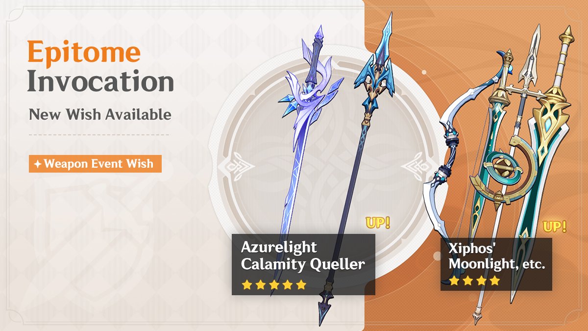 Event Wish "Epitome Invocation" - Boosted Drop Rates for Azurelight (Sword) and Calamity Queller (Polearm)!