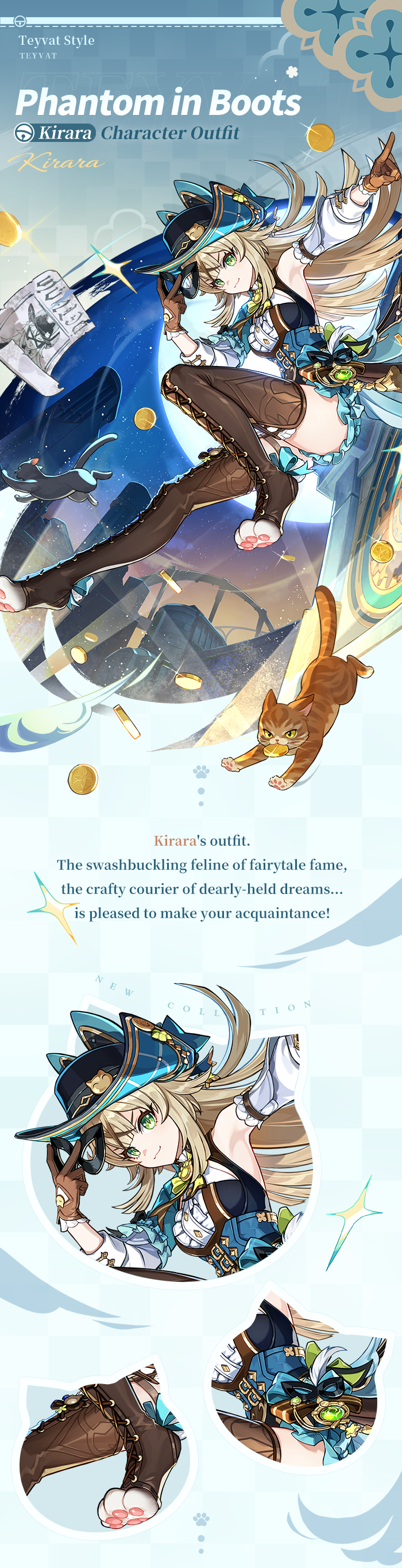 Kirara's new outfit "Phantom in Boots" will be available soon after the Version 4.8 update. Get it for free during the limited-time event "Summertide Scales and Tales"! Let's check it out~